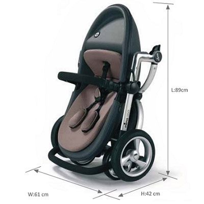 - Размери на количката в сгънато състояние с колелата (ДxШxВ): 89x61x42 см;