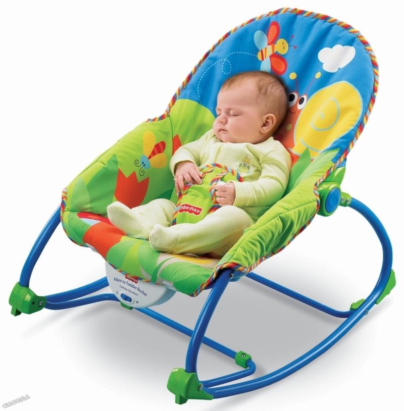 - Шезлонгът е снабден с вибрираща функция, която леко залюлява детето ви;