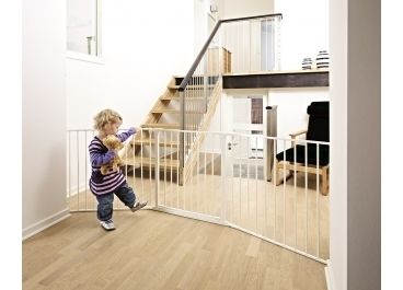 Комбинираната преграда BabyDan L е с големи размери и е подходяща за ограничаване на достъпа на детето до стълби или част от помещението, както и за любопитни домашни любимци. Тя се състои от 3 панела, които могат свободно да бъдат конфигурирани в различни форми, но само ако крайните панели са здраво фиксирани с държачите. Средният от панелите се отваря с една ръка, а самото фиксиране на преградата се осъществява чрез първоначално разпробиване на стената или на касата на врата.