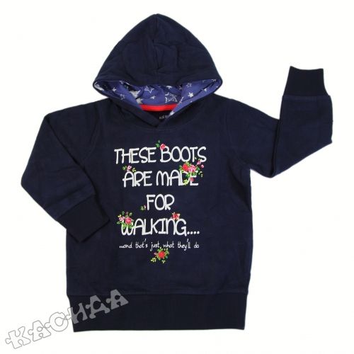 Блузката с дълъг ръкав е изработена от висококачествена материя, като са спазени всички европейски стандарти за безопасност при изработването на детски дрехи. Блузката е леко ватирана и със свободна кройка, има дълбока качулка и може да се носи като горна дреха в преходните сезони. Семплата комбинация между цвят и свободна кройка, правят блузката подходящо спортно допълнение към тоалета на всяко малко момиче.