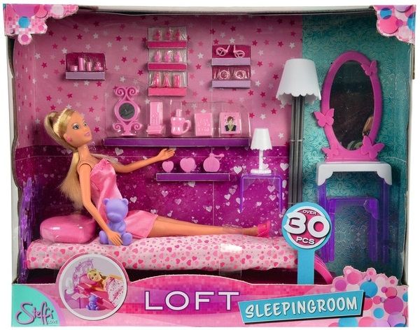 Кукла Стефи разполага със собствена спалня, където може удобно да се настани и да си почива след изморителни разходки. Спалнята е обзаведена с легло, етажерки, лампа, огледало и дребни аксесоари към куклата Стефи.