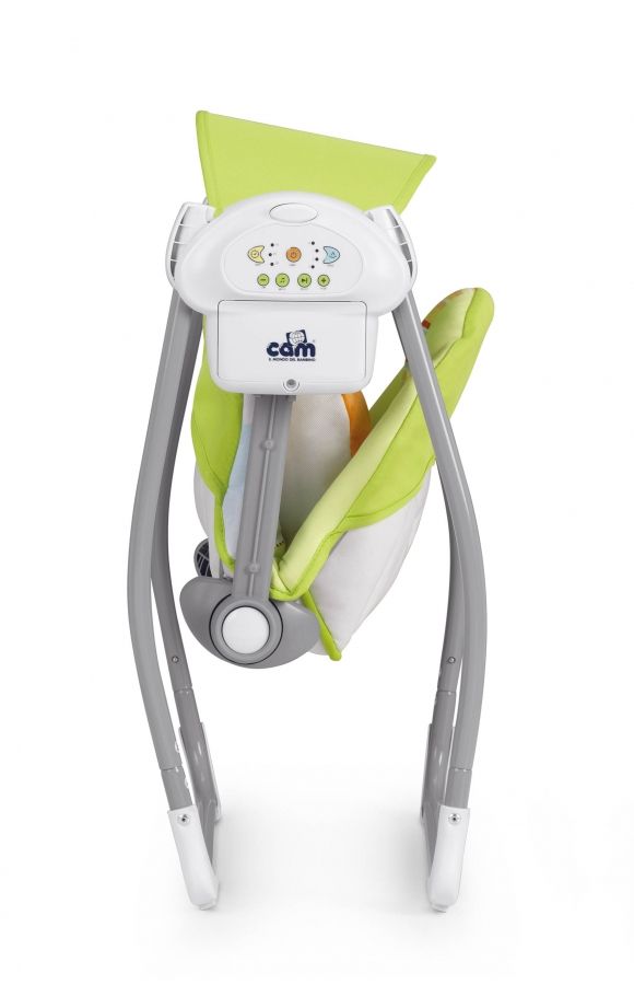 Бебешката люлка Sonnolento, Cam е подходяща за деца от 0 до 9 кг, има 2 положения на гръбчето, 3 скорости на люлеене, включени в комплекта 2 играчки, мелодии и звуци.