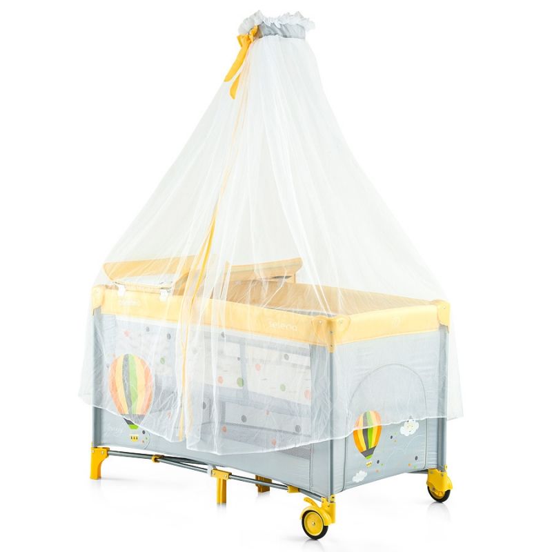 Селена, Чиполино е сгъваема кошара на 2 нива с балдахин за деца от 0 месеца с тегло до 15 кг.