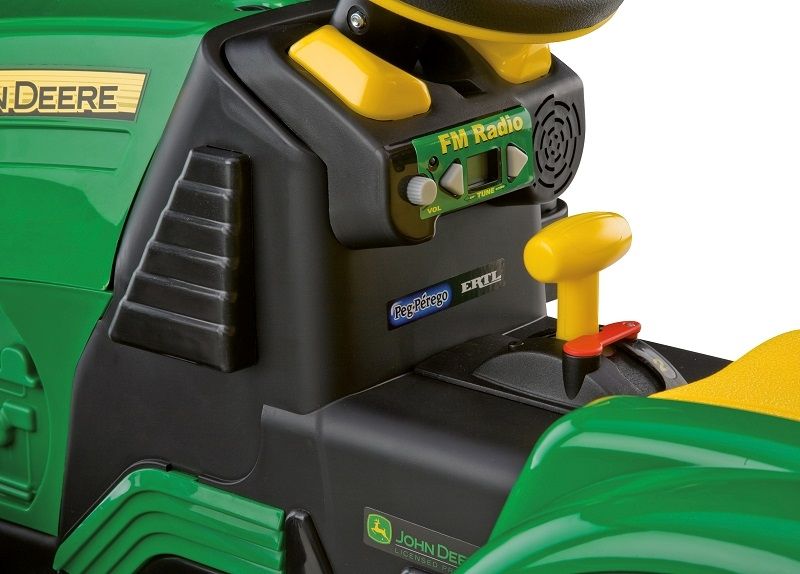 Страхотният акумулаторен трактор с 12V волтова батерия J. DEERE GROUND FORCE на Пег Перего е направен като копие на истинските, американски машини John Deere. Той е специално проектиран за свободолюбиви малчугани над 3 годишна възраст който желаят активни и продължителни игри навън. Благодарение на специално разработената от италианската фирма Пег Перего “All in One” технология, J.DEERE POWER PULL е лесен за използване дори и от най-малките трактористи. Той има един единствен педал, с който скоростта може да се ускорява. Моделът е идеален за пътуване върху равни терени, асфалт, цимент и плочки, но дава невероятни възможности за комфортно возене и върху стръмни и неравни места, преодоляващ до 10% наклон, има и удобна и широка седалка с подлакътници, а благодарение на своите 4 гуми пътуването е стабилно и безопасно за децата.
