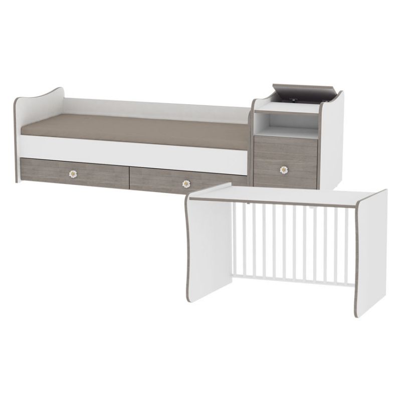 - Леглото може да се трансформира в юношеско легло, бюро и шкафче и да се използва по няколко различни начина за 1 или 2 деца;