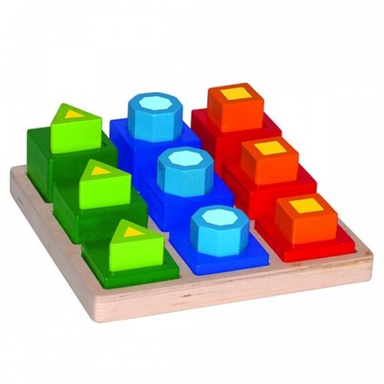 Wood Пъзел сортер, Форми и цветове на различни височини