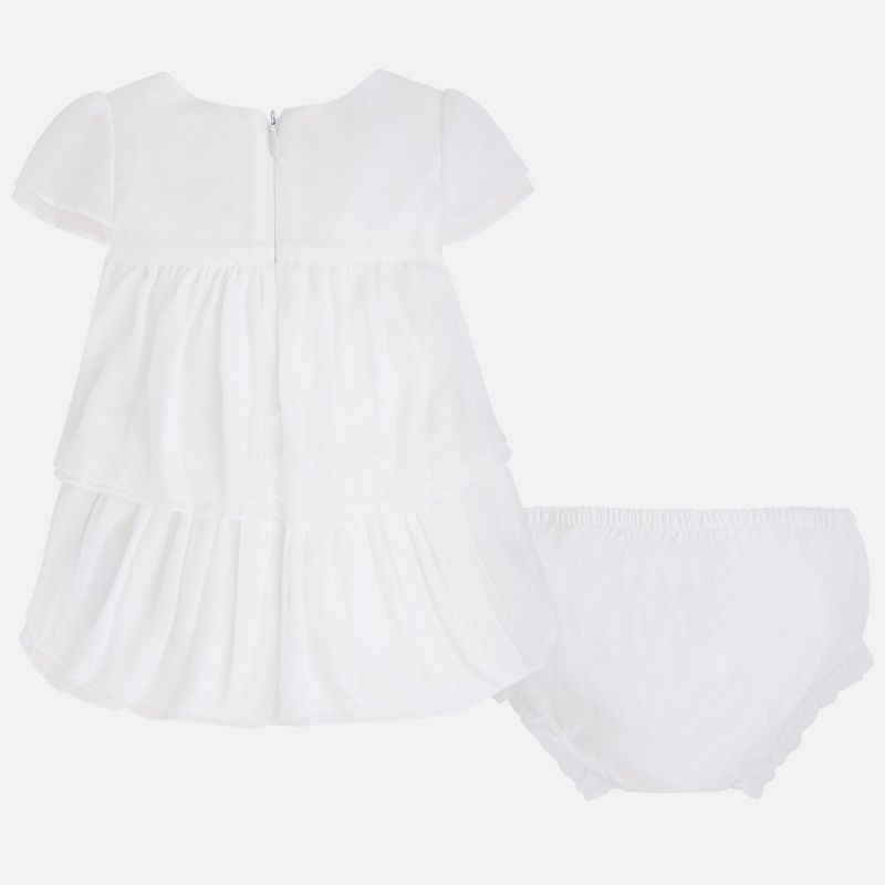 Тази прекрасна бебешка рокличка изцяло спазва концепцията на испанската фирма Mayoral да осигури на детето удобство, комфорт и не на последно място да изглежда изключително добре. Тя е изработена от мека лека материя. Това я прави идеалният избор, както за ежедневието, така и за по-специален повод. На гърба се закоплава посредством цил, за по лесно обличане. Кройката и е свободна, а в предната си част има малка панделка, която перфектно завършват визията и.