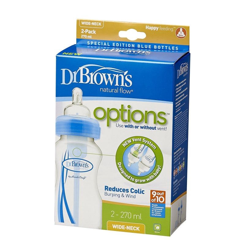 Dr.Brown`s Natural Flow Options - Широки шишета за хранене 270ml. 2бр. *синьо*