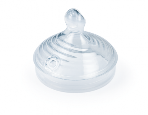 Силиконовият биберон против колики на NUK е изработен така, че максимално да наподобява майчината гръд, а анатомичната му форма улеснява бебето при сукане. С този биберон, за бебето усещането от сученето е на практика същото, както при сукане от майчината гръд, защото се изисква по-голямо усилие от страна на бебето от колкото при сученето от нормален биберон. Има специални отвори, които не позволяват навлизането на въздух в биберона и по този начин се намаляват колики.