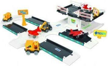 Wader Писта - летище отлично предложение за най-малките фенове на авиацията. Комплектът се състои от летище на две нива и шест въздушни превозни средства. Техническа експлоатация на самолети и зона за излитане и кацане се намират на първо ниво. Площадката за хеликоптер се намира на второ ниво. Чрез своя дизайн и форми стимулира моториката на ръцете на детето, развитието на интелекта и въображението. Лесна и проста конструкция, комплектът е съвместим с други продукти от серията от Kid Cars 3D. Тематичните стикери са приложени в комплекта.