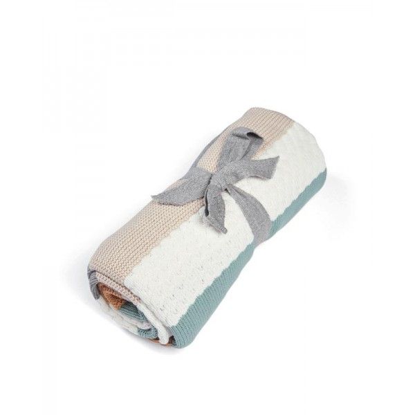 Плетено одеяло за новородено е идеалния аксесоар за поддържане на уюта на мъничето Ви в бебешката количка и също толкова добро за гушкане в детската стая. Много меко към деликатната бебешка кожа. Сладък син дизайн на райета, то е подходящо от раждането.
