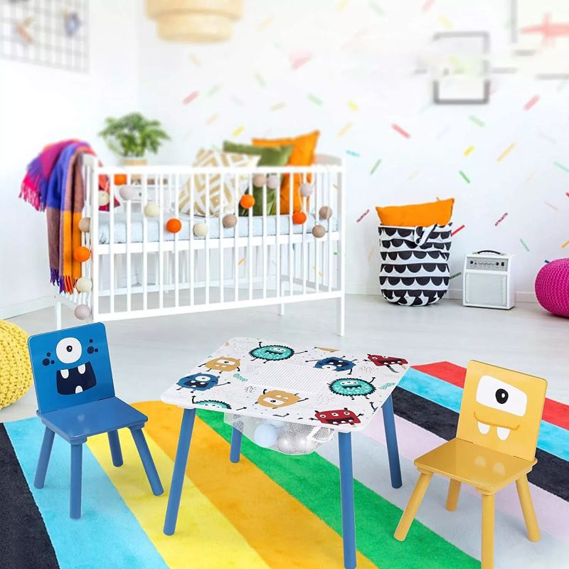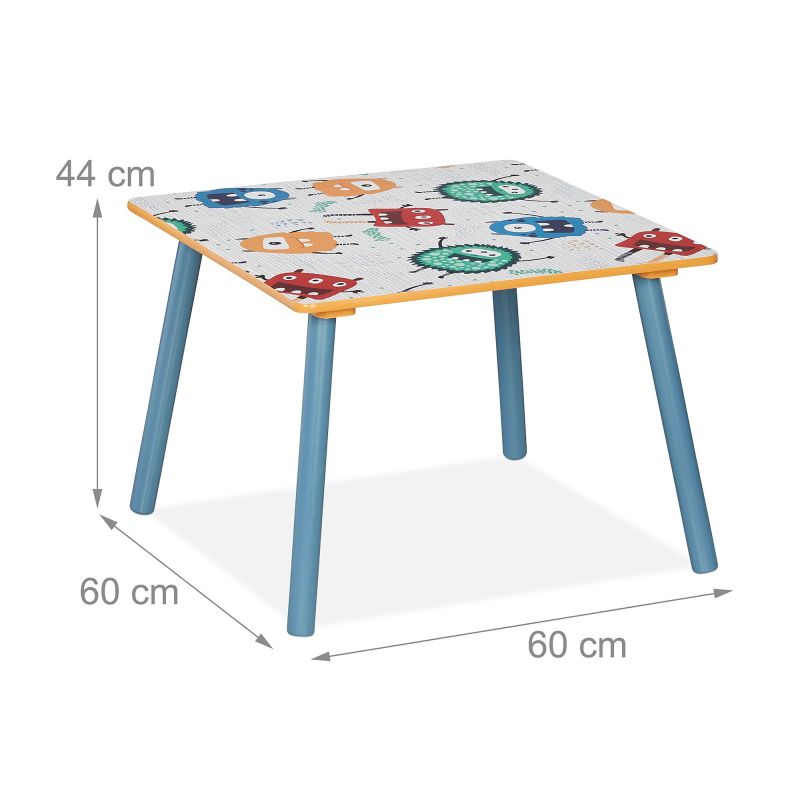 Този великолепен детски комплект с маса и столчета е перфектен избор за дететo, където може да рисува или играе с приятели. Комплектът е изработен от висококачествен MDF материал и направен така че да бъде издържлив на употреба и износване. Това е чудесен подарък за вашето дете. Със своя модерен, забавен дизайн в синьо и жълто със забавни Духчета и идеални размери комплектът маса и столчетата се вписва във всяка детска стая - независимо дали е за момче или момиче.