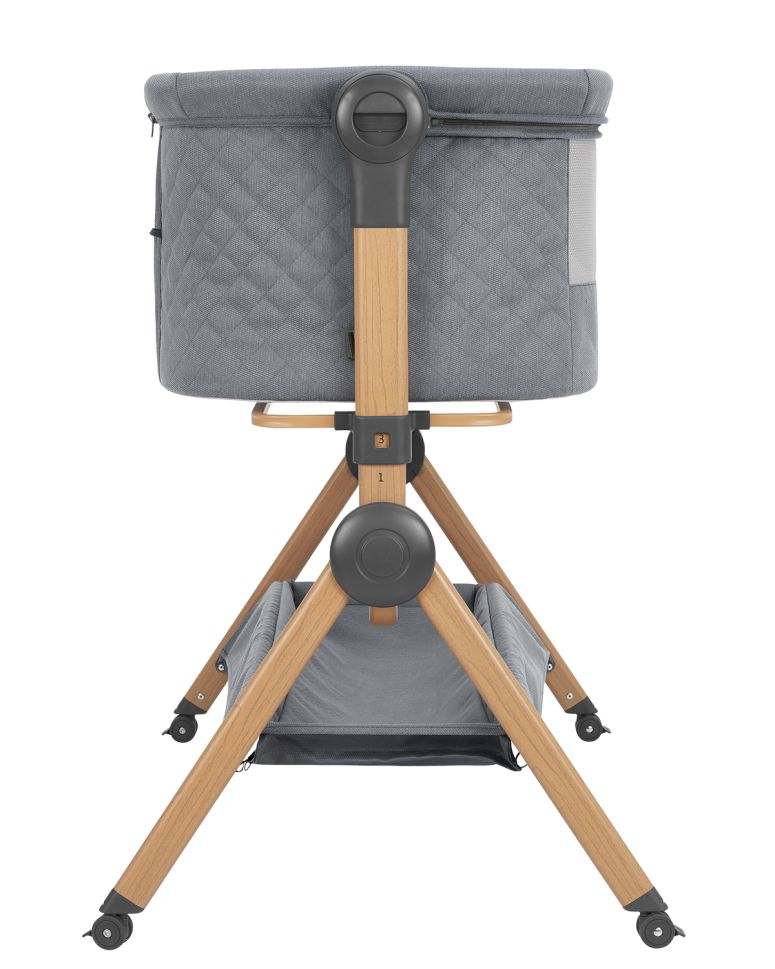 Компактна, стилна и лесна за трансформиране – Sleat Me спестява място и време, като расте заедно с вашето дете. Функцията „next to me" позволява закрепване на кошарката към леглото на родителя. Моделът разполага с регулиране на височината в 3 нива, анти-рефлукс позиция, колелца и място за съхранение.
