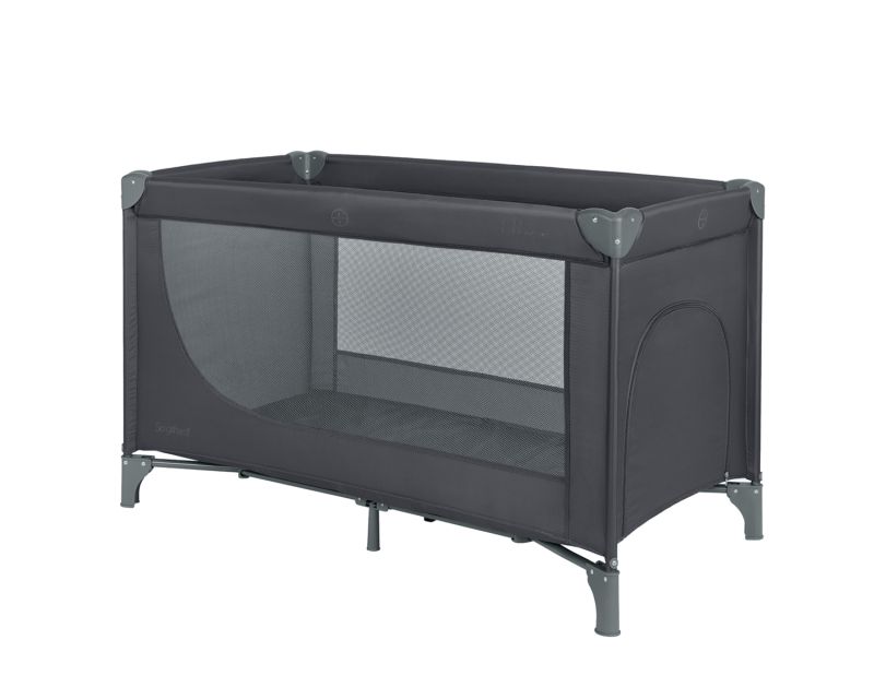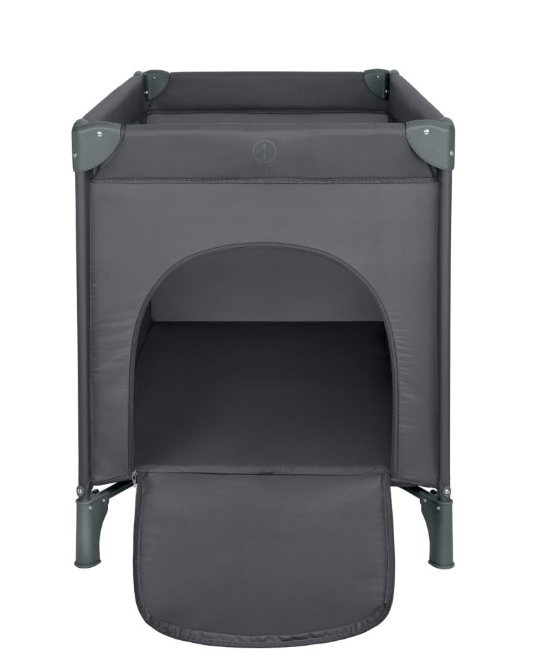 Кошарата разполага с мрежести части от двете страни за оптимална вентилация, страничен отвор с цип за по-лесен достъп и мека подложка за максимален комфорт. Компактното сгъване и чантата за пренасяне я правят подходяща както за дома, така и за пътуване.