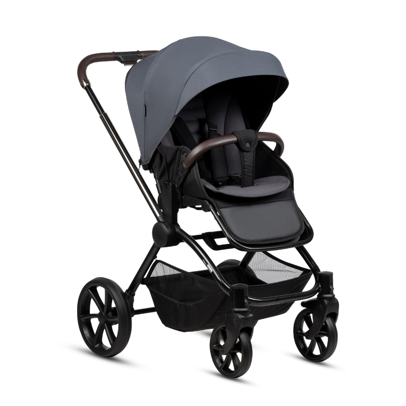 Абсолютно нов модел шаси с двойни амортисьори и просторен отворен кош за багаж. Сгъването и пренасянето става лесно, благодарение на дръжката с бутон на шасито. А регулирането по височина също става плавно и удобно от дръжката на количката. Гумите - големи и непробиваеми, се свалят лесно за по-компактно прибиране или почистване. Седалката е компактна и се сгъва заедно с шасито, без значение от посоката на поставяне. Просторна от вътре с подложка от мемори пяна за по-голям комфорт и магнитна закопчалка на 5-точковия предпазен колан - бързо и лесно обезопасяване само с една ръка!
