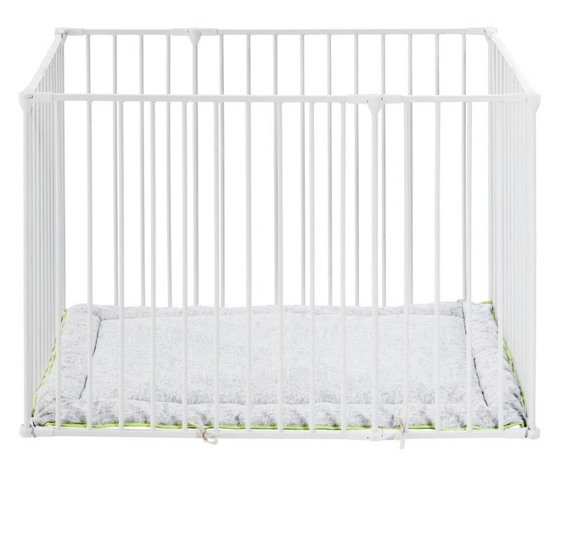Правоъгълната кошара осигурява сигурност на Вашето бебе и дете. Лесно се превръща от кошара в разделител за стая или преграда за части от помещение. Кошарата е в бяло, с двулицево килимче, лесно се сгъва и прибира. Подходяща е за новородени и отговаря на стандарт EN 12227:2010.